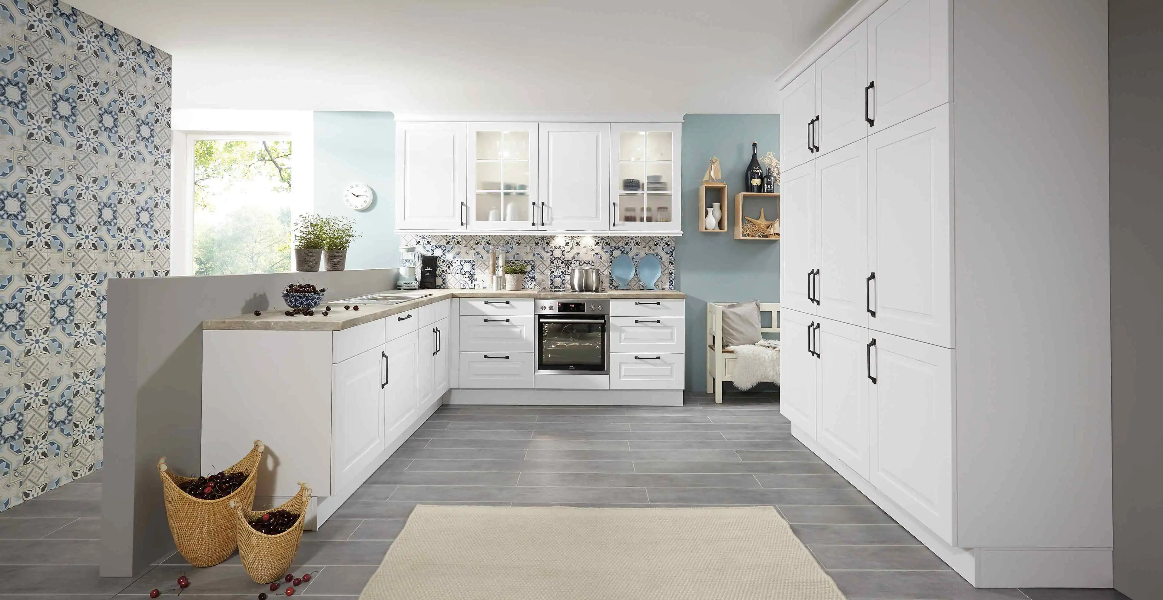 Hier wird die offene Landhausküche zum Mittelpunkt des täglichen Lebens. Freuen Sie sich auf eine helle, freundliche Wohlfühlküche, die nicht nur durch ihre besondere Optik, sondern auch mit ihrer Ausstattung überzeugt.
