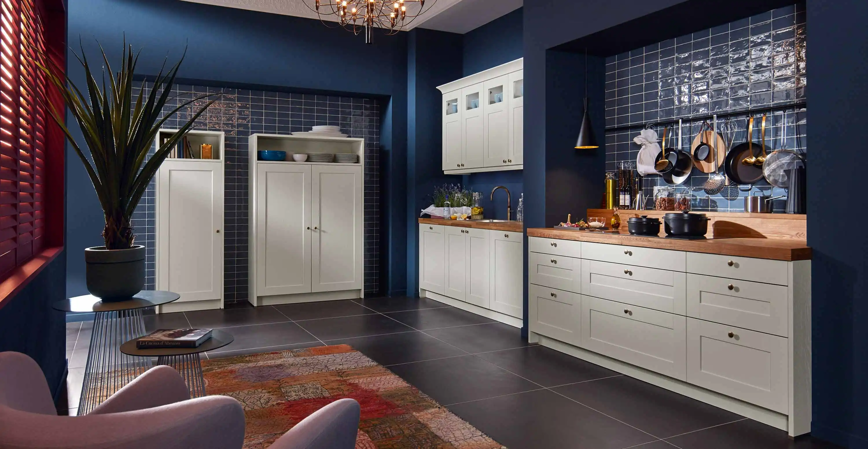 Die hellen Rahmen-Fronten kommen vor allem bei kontrastreichen Farben und Mustern besonders gut zur Geltung und verleihen jedem Wohnstil das charakteristischen Landflair. Mit einer Arbeitsplatte aus Stein oder Holz sowie Holznachbildung haben Sie den perfekten Begleiter für den Alltag.